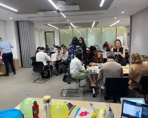 In partnership with Companies For Good, Skills3 facilitated a school supplies packing workshop with an unique twist for NovoNordisk Dubai. In addition to packing a school, employees spent time creating handmade covered notebooks and decorated water bottles, adding a personalized touch to each pack.